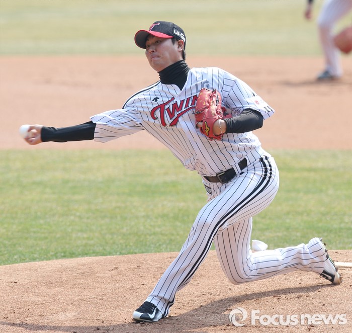 (서울=포커스뉴스) 27일 서울 잠실구장에서 열린 2016프로야구 시범경기 두산-LG 경기에서 1회 LG 선발투수 우규민이 투구하고 있다.