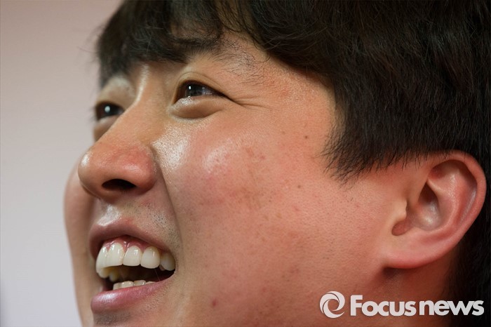 (서울=포커스뉴스) 이준석 새누리당 서울 노원병 후보가 27일 오후 노원구 자신의 선거사무소 개소식에서 만세를 외치고 있다.