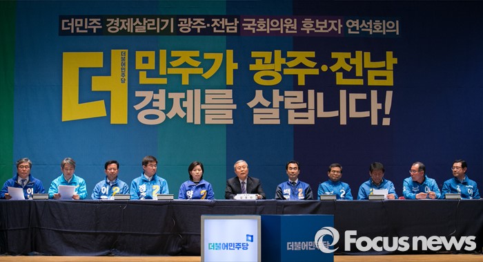 한편, 이날 행사에는 광주 8개 지역구에 출마하는 더민주 후보자 8명과 박영선 비대위원, 이철희 전략기획본부장 등이 함께 참석했다. 김 대표는 광주 더불어경제콘서트를 마지막으로 1박 2일 동안의 광주·전남 공식 일정을 마무리했다.김종인 더불어민주당 비대위 대표가 27일 오전 광주 서구 김대중컨벤션센터에서 열린 더불어민주당 경제살리기 광주·전남 20대 총선 후보자 연석회의에 참석해 경제살리기 선언문을 낭독하고 있다. 2016.03.27 박동욱 기자