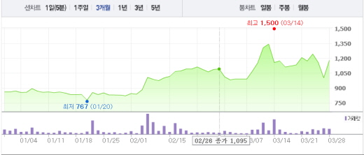25일 열린 넥솔론 예비입찰에는 중국업체 1곳이 인수의향서(LOI)를 제출한 것으로 알려졌다.주가흐름<사진출처=네이버 캡쳐>