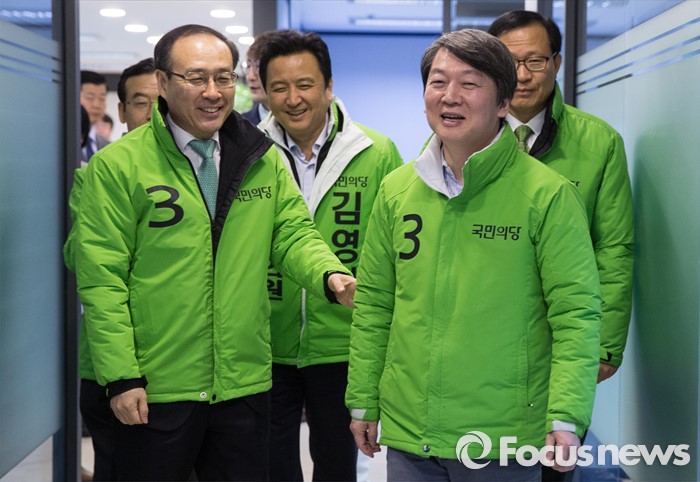 (서울=포커스뉴스) 안철수 국민의당 상임공동대표(오른쪽)와 선거대책위원들이 28일 오전 서울 마포구 당사에서 열린 선거대책위원회의에 참석하고 있다.