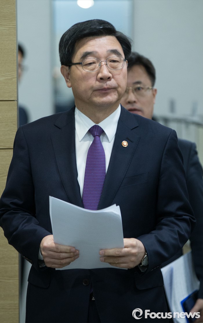 (세종=포커스뉴스) 이기권 고용노동부장관이 28일 오전 세종시 정부세종청사 고용노동부 기자실에서 프랑스 국제장애인기능올림픽대회 6연패 달성과 위법·불합리한 단체협약 관련 브리핑을 위해 입장하고 있다.