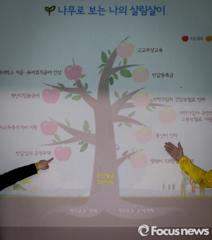 (서울=포커스뉴스) 심상정(왼쪽) 정의당 상임선대위원장과 천호선 공동선대위원장이 28일 오전 서울 여의도 국회에서 열린 중앙선대위 회의에 참석해 '정의로운 가계부' 소개 및 시연 행사 후 취재진을 향해 포즈를 취하고 있다.