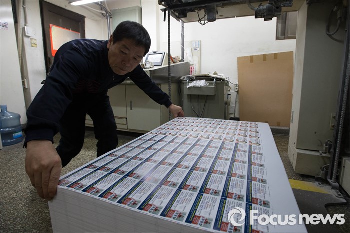 (서울=포커스뉴스) 총선을 16일 앞둔 28일 오전 서울 중구 충무로의 한 인쇄소에서 총선 예비후보의 명함 인쇄작업이 진행되고 있다.