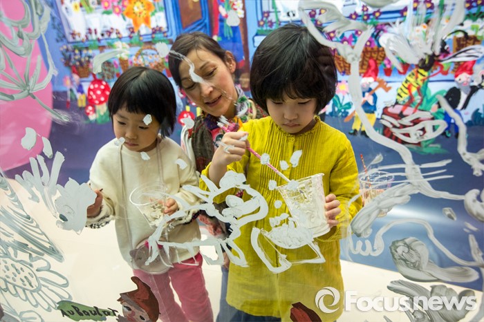(서울=포커스뉴스) 28일 오전 서울 송파구 롯데백화점 잠실점 에비뉴엘 아트홀에서 열린 '러블리 레테' 전시회에서 프랑스 작가 나탈리 레테가 어린이들과 라이브페인팅을 하고 있다.