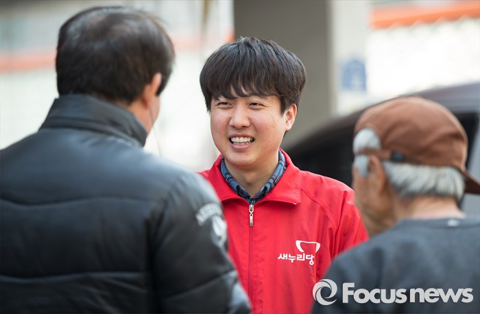 (서울=포커스뉴스) 이준석 새누리당 노원병 후보가 28일 오후 서울 노원구 당고개역 앞에서 선거 유세를 하고 있다.