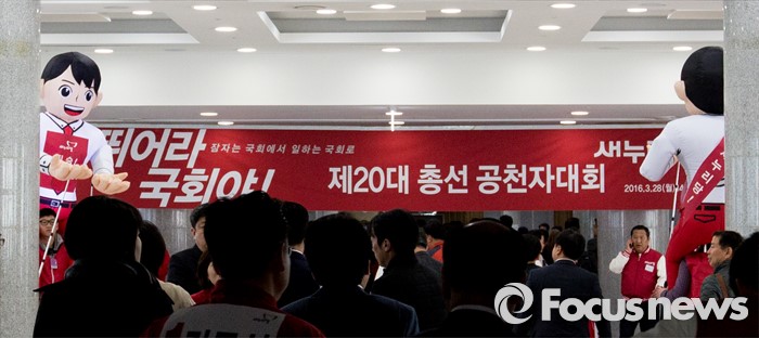 (서울=포커스뉴스) 28일 오후 서울 영등포구 국회 의원회관에서 열린 '20대 총선 새누리당 공천자대회'에서 각 지역 후보자들이 행사장으로 이동 하고 있다.
