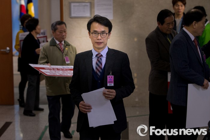 (서울=포커스뉴스) 새누리당의 무공천 결정으로 4.13 총선 서울 은평을 출마가 무산된 유재길 예비후보가 28일 오후 서울 영등포구 국회에서 무공천 결정에 관한 대응 방안을 발표 한 뒤 정론관을 나서고 있다.