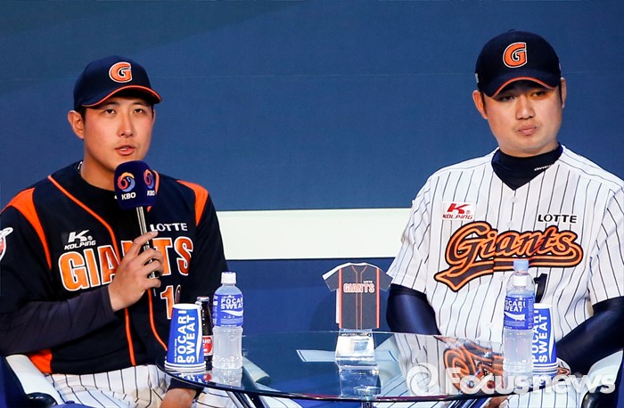 (서울=포커스뉴스) 28일 오후 서울 용산구 브루스퀘어 삼성카드홀에서 열린 '2016 타이어뱅크 프로야구 미디어데이 & 팬페스트' 행사에 참석한 롯데 타이거즈 황재균 선수가 새 시즌에 임하는 각오를 밝히고 있다.