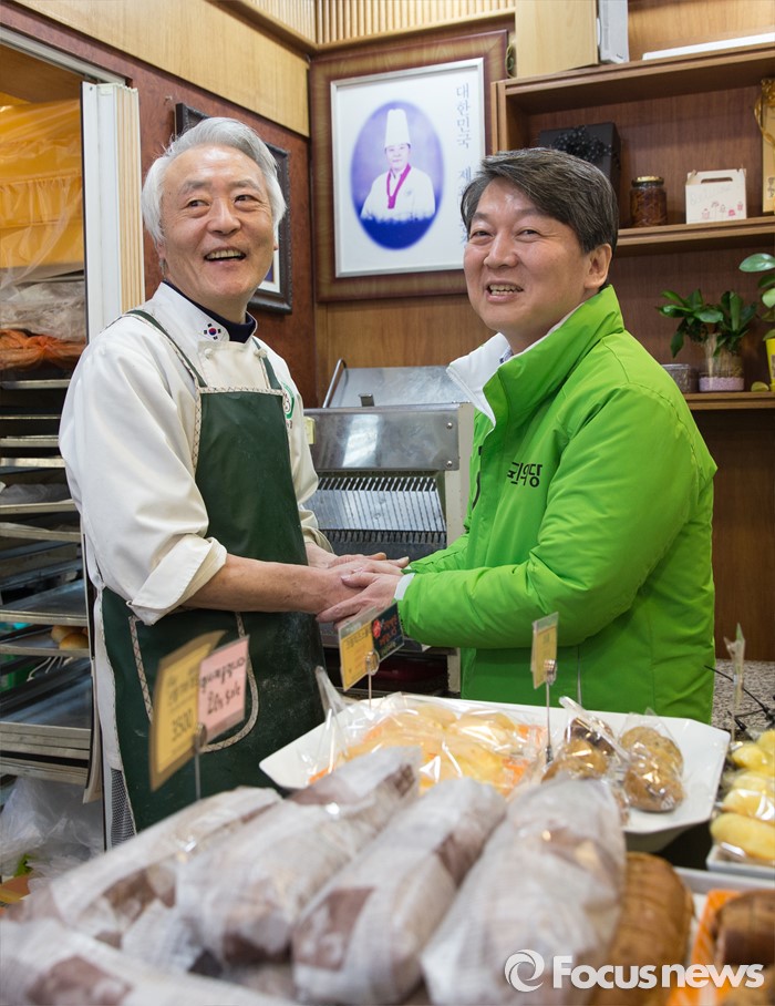 | △ 제과점에서 인사 나누는 안철수 |