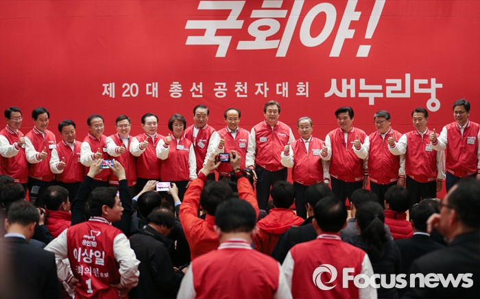 (서울=포커스뉴스) 28일 오후 서울 여의도 국회 의원회관에서 열린 새누리당 20대 총선 공천자대회에 참석한 대구 지역 후보들과 지도부가 기념촬영을 하고 있다.