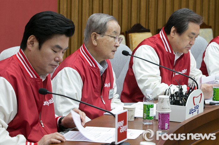 (서울=포커스뉴스) 강봉균(가운데) 새누리당 공동 선거대책위원장이 29일 오전 서울 여의도 국회에서 열린 첫 중앙선거대책위원회의에 참석해, 20대 총선 경제정책 공약을 설명하고 있다.