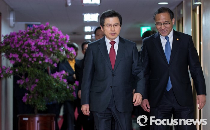 (서울=포커스뉴스) 29일 오전 서울 종로구 정부서울청사에서 열린 국무회의에 황교안(왼쪽) 국무총리와 홍윤식 행정자치부 장관이 참석하고 있다.