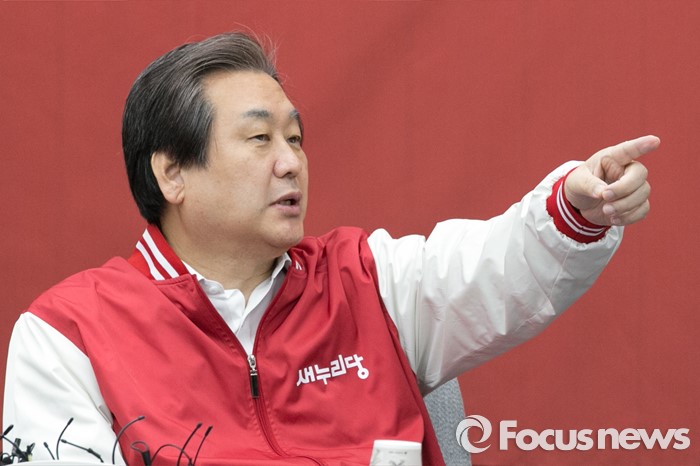 (서울=포커스뉴스) 김무성 새누리당 대표가 29일 오전 서울 여의도 국회에서 열린 첫 중앙선거대책위원회의에 참석해, 의원들과 대화하고 있다.