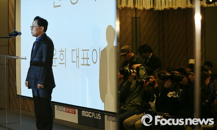 (서울=포커스뉴스) 29일 오전 서울 종로구 포시즌스 호텔에서 열린 'MBC스포츠플러스2' 개국 기자간담회에 참석한 한윤희 대표가 환영사를 하고 있다.