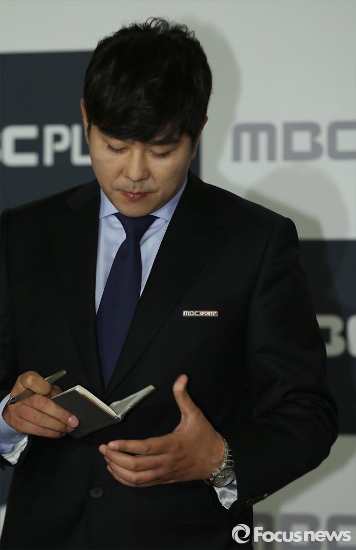 (서울=포커스뉴스) 29일 오전 서울 종로구 포시즌스 호텔에서 열린 'MBC스포츠플러스2' 개국 기자간담회에 참석한 정민철 해설위원이 포토타임을 갖고 있다.