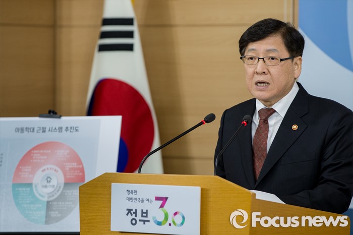 (서울=포커스뉴스) 29일 오전 서울 종로구 정부서울청사에서 정진엽 보건복지부 장관이 '관계부처 합동 아동학대 방지 대책'에 대해 발표하고 있다.