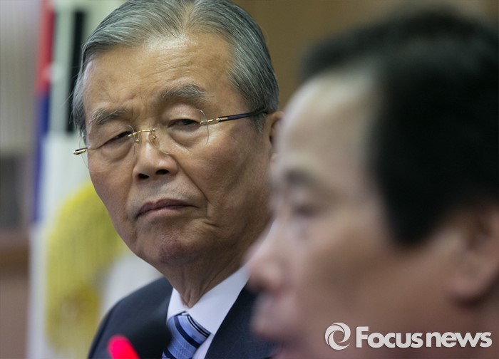 | △ 발언 듣는 김종인 |
