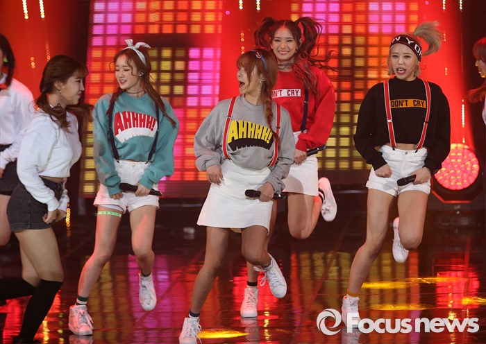 (서울=포커스뉴스) 29일 오후 서울 마포구 SBS프리즘 타워에서 열린 2016 '더쇼' 생방송에 참여한 걸그룹 마틸다의 멤버 멤버들이 '마카레나'의 무대를 선보이고 있다.