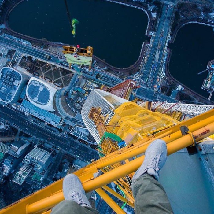 (서울=포커스뉴스) 러시아 출신 사진작가 비탈리 라스카로프가(22)가 27일 자신의 인스타그램을 통해 잠실 롯데월드타워 최상층에서 촬영한 사진을 공개했다. 또한 비탈리 라스카로프는 "곧 동영상을 공개하겠다"고 예고했다. 이 남성은 세계 유명 초고층 빌딩에 안전 장비 없이 맨몸으로 올라가 아찔한 사진을 올리기로 유명하다. <사진=비탈리 라스카로프 인스타그램 캡쳐>