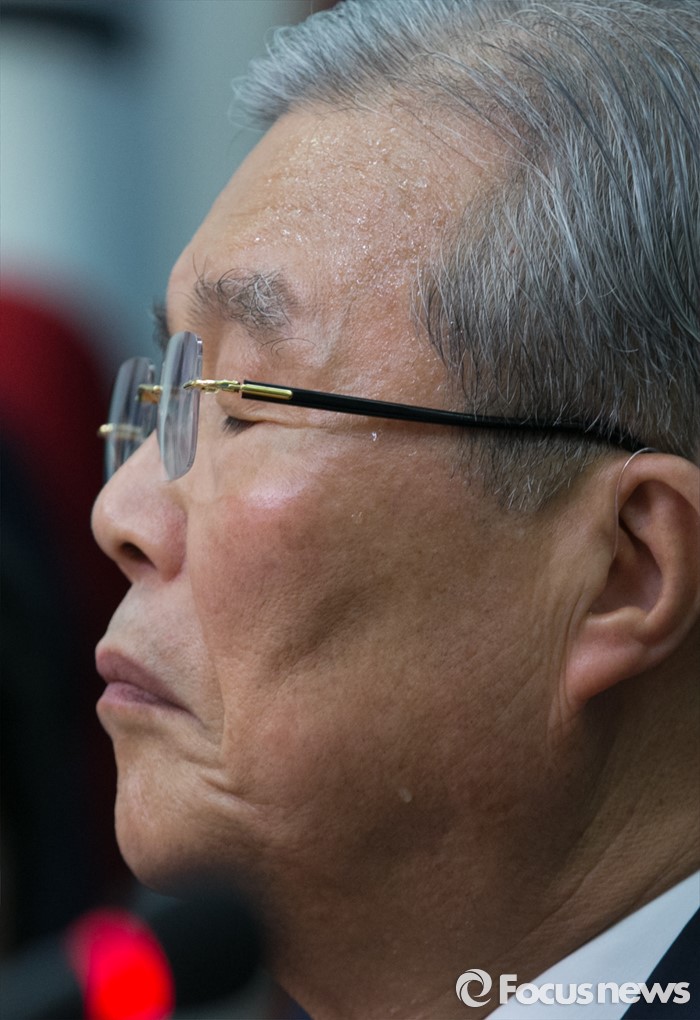 (서울=포커스뉴스) 김종인 더불어민주당 비대위 대표 겸 선대위원장이 30일 오전 서울 여의도 국회에서 열린 중앙선거대책위원장단회의에 참석해 땀을 흘리고 있다.