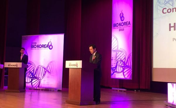 뿐만 아니라 “글로벌신약과 첨단의료기기 유전자 줄기세포 정밀재생의료 등을 새로운 성장동력으로 발전시켜 경제활성화와 일자리 창출에 진력하겠다. 기술개발과 창업에 장애가 되는 규제는 과감히 철폐할 것이다”고 덧붙였다.황교안 국무총리가 30일 열린 2016 바이오코리아 개막식에서 바이오헬스산업 지원방안 마련을 약속했다. <사진=민승기 기자>