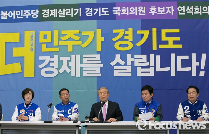 (수원=포커스뉴스) 30일 오전 수원 팔달구 경기도의회에서 열린 더불어민주당 경제살리기 경기 국회의원 후보자 연석회의에 참석한 김종인(가운데) 비대위 대표가 모두발언을 하고 있다.