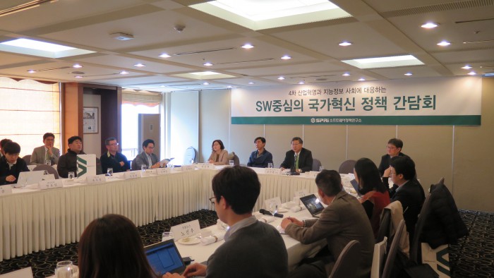 SW정책연구소 30일 서울 프레스센터에서 ‘4차 산업혁명과 지능정보 사회에 대응하는 SW중심의 국가혁신 전략’ 간담회를 개최했다.