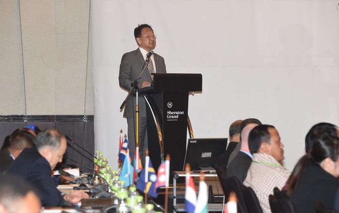 (인천=포서스뉴스) 유일호 부총리 겸 기획재정부장관이 30일 인천 송도 쉐라톤호텔에서 열린 '제1회 아태지역 개발재원 고위 후속대화'에 참석해 '지속가능개발목표(SDGs) 달성 및 개발재원 확대를 위한 한국의 아태지역 지원 방향'을 주제로 특별강연을 하고 있다. <사진제공=기획재정부>