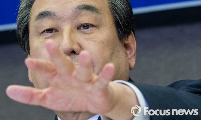 (서울=포커스뉴스) 30일 오후 서울 중구 프레스센터에서 열린 관훈클럽 초청 관훈토론회에 참석한 김무성 새누리당 대표가 좌석 조정을 요구하고 있다.