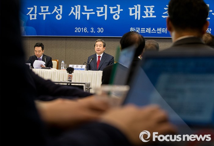 (서울=포커스뉴스) 30일 오후 서울 중구 프레스센터에서 열린 관훈클럽 초청 관훈토론회에 참석한 김무성 새누리당 대표가 모두발언을 하고 있다.