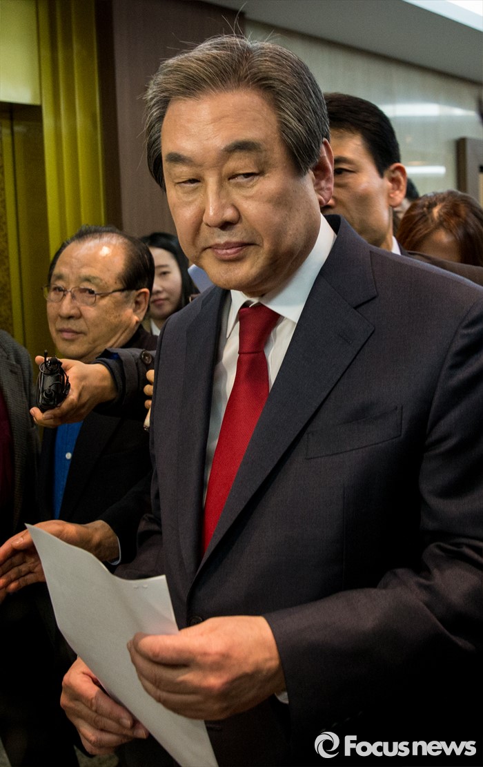 (서울=포커스뉴스) 30일 오후 서울 중구 프레스센터에서 열린 관훈클럽 초청 관훈토론회를 마친 김무성 새누리당 대표가 엘리버이터로 발걸음을 옮기고 있다.