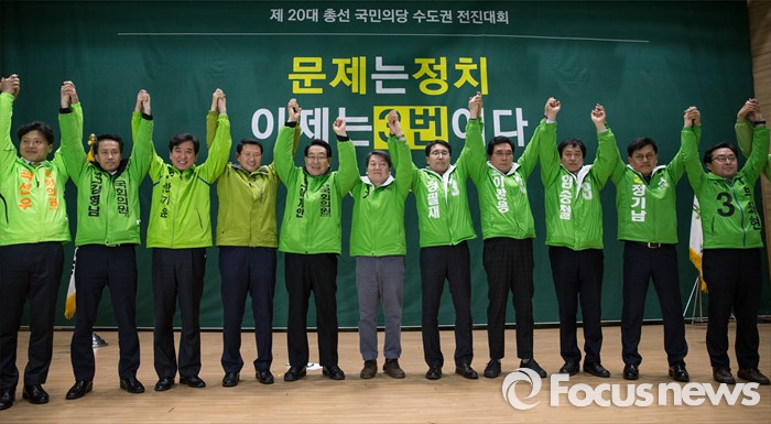 안철수 국민의당 공동대표를 비롯해 문병호·최원식·김성식·정환석·이수봉 후보 등 수도권 지역에 출사표를 던진 이들은 4·13총선 공식 선거 운동일을 하루 앞둔 30일 오후 국회에서 '수도권 출정식'에 참석, "문제는 정치다. 이제는 3번"라는 구호를 외치며 선전을 약속했다.