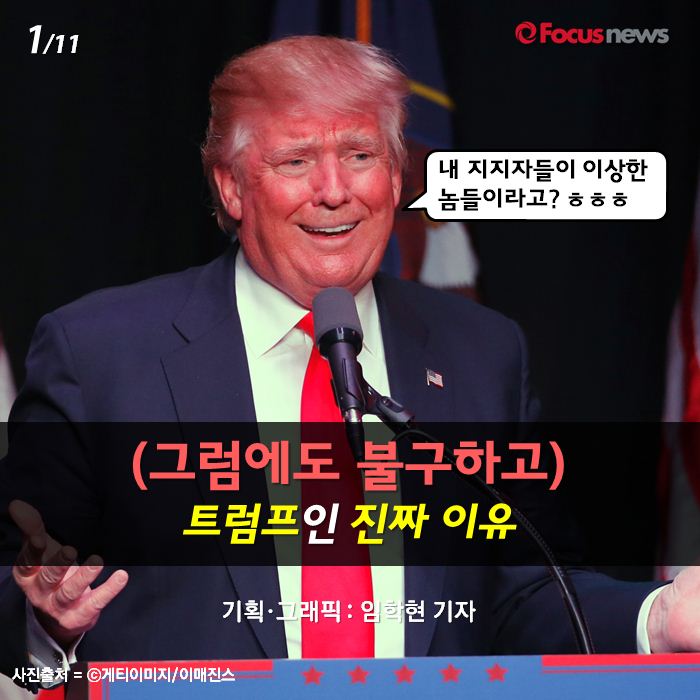 (서울=포커스뉴스) 하루가 멀다 하고 전해지는 트럼프의 망언과 기이한 행동들이 미국 대선을 우스꽝스러운 리얼리티 쇼로 만들고 있는 것 같습니다. 그럼에도 불구하고 그가 여전히 공화당 경선주자들 중 1위를 달리고 있는 이 현실을 어떻게 받아들여야 하는 걸까요? 미국은 정말 트럼프를 선택하려는 걸까요?