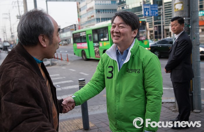 (서울=포커스뉴스) 총선 선거운동이 공식적으로 시작된 31일 오전 안철수 국민의당 노원병 후보가 서울 노원구 수락산역 앞에서 지역 주민들에게 출근 인사를 하고 있다.