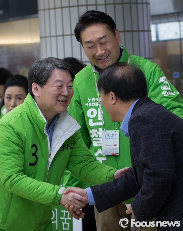 (서울=포커스뉴스) 총선 선거운동이 공식적으로 시작된 31일 오전 안철수 국민의당 노원병 후보가 서울 노원구 수락산역 역사 내에서 지역 주민들에게 출근 인사를 하고 있다.