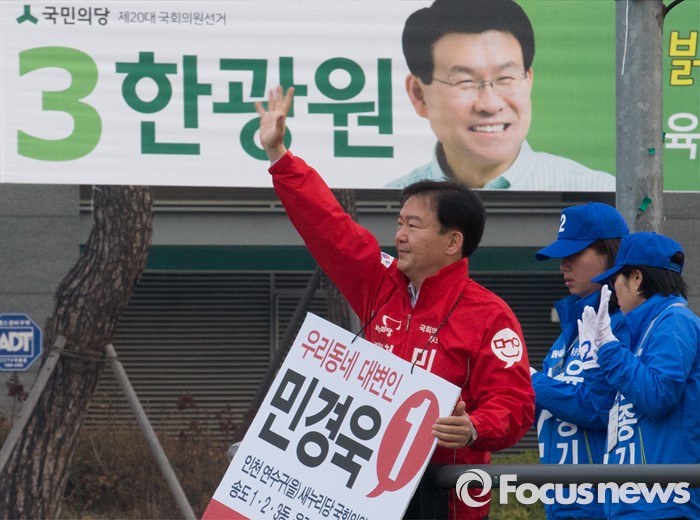 | △ 지지 호소하는 민경욱 새누리당 후보 |