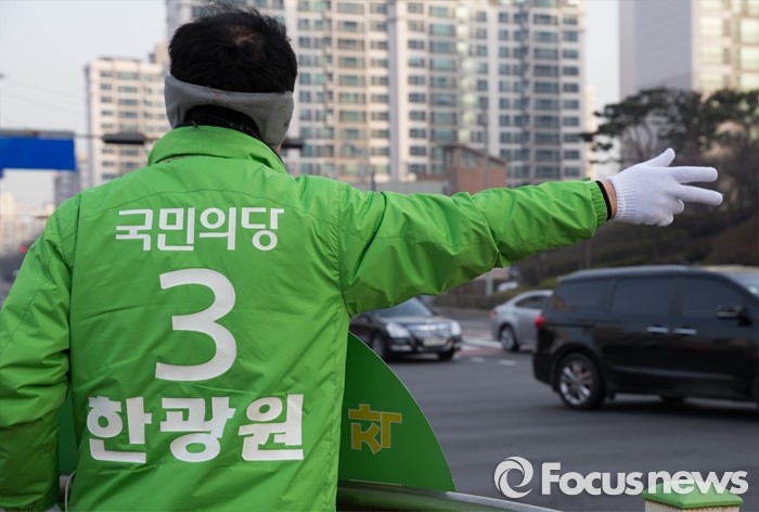 (인천=포커스뉴스) 제20대 총선 선거운동이 공식적으로 시작된 31일 오전 인천 연수구 한 사거리에서 한광원 국민의당 연수을 후보가 출근하는 시민들에게 인사하며 지지를 호소하고 있다.