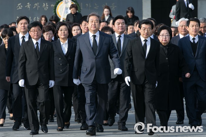 (서울=포커스뉴스) 4.13 총선 공식선거운동이 시작된 31일 오전 서울 동작구 국립현충원에서 김무성 새누리당 대표를 비롯한 지도부와 후보들이 참배를 마친 뒤, 행진하고 있다.