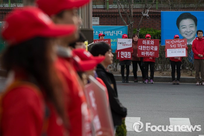 (서울=포커스뉴스) 20대 총선 공식선거 운동이 시작된 31일 오전 서울 마포구의 한 아파트 입구에서 안대희 새누리당 마포구갑 후보측이 출근길 선거유세를 하고 있다.