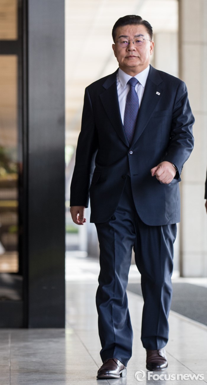 (서울=포커스뉴스) 용산 국제업무지구 개발 관련 금품수수 혐의를 받고 있는 허준영 전 코레일 사장이 31일 오전 서울중앙지검에 출두하고 있다.