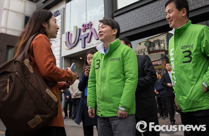 (서울=포커스뉴스) 총선 선거운동이 공식적으로 시작된 31일 오전 안철수 국민의당 상임공동대표가 서울 성북구 성신여대입구역 앞에서 도천수 성북갑 후보 지원 유세를 하고 있다.