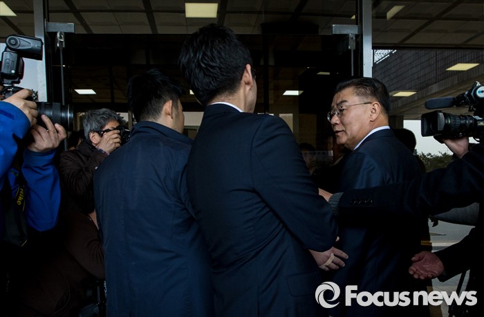 (서울=포커스뉴스) 용산 국제업무지구 개발 관련 금품수수 혐의를 받고 있는 허준영 전 코레일 사장이 31일 오전 서울중앙지검에 출두하고 있다.