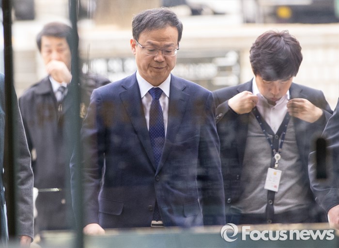 (서울=포커스뉴스) 광고기획사에서 뒷돈을 챙긴 혐의를 받고 있는 백복인 KT&G 사장이 영장실짐심사를 받기 위해 31일 서울중앙지방법원으로 들어서고 있다.