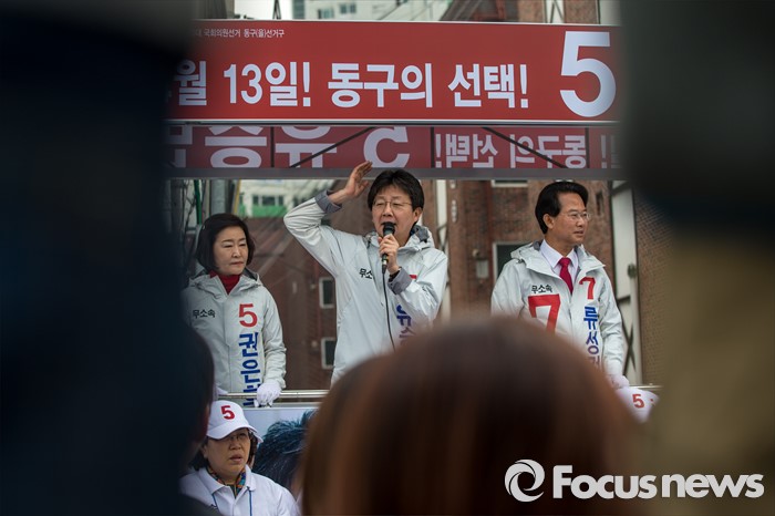 (대구=포커스뉴스) 무소속 대구 동구을 유승민 후보가 31일 오전 대구 동구 공항교에서 열린 선거운동 출정식에 참석해 출정 각오를 발표하고 있다.