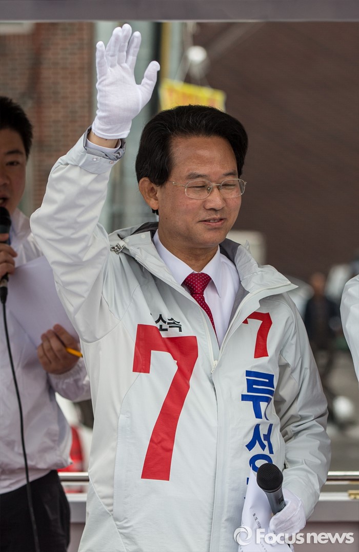 (대구=포커스뉴스) 무소속 대구 동구갑 류성걸 후보가 31일 오전 대구 동구 공항교에서 열린 선거운동 출정식에 참석해 지지자들에게 손을 흔들며 인사하고 있다.