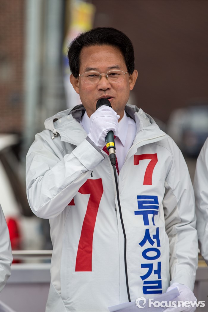 (대구=포커스뉴스) 무소속 대구 동구갑 류성걸 후보가 31일 오전 대구 동구 공항교에서 열린 선거운동 출정식에 참석해 출정 각오를 발표 하고 있다.