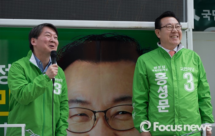 (서울=포커스뉴스) 총선 선거운동이 공식적으로 시작된 31일 오전 안철수 국민의당 상임공동대표가 서울 마포구 이대역 앞에서 마포갑 홍성문 후보와 함께 홍성덕 서대문을 후보 지원 유세를 하고 있다.