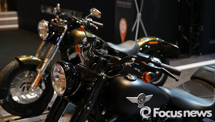 (서울=포커스뉴스) 31일 오전 서울 강남구 코엑스 D홀에서 열린 '2016 서울 모터사이클쇼' 에 할리데이비슨 부스에 전시된 FAT BOY'S의 모습.