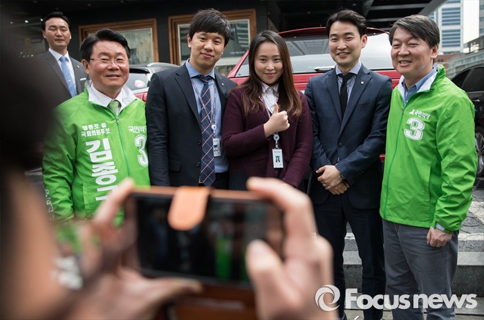 (서울=포커스뉴스) 총선 선거운동이 공식적으로 시작된 31일 오후 안철수 국민의당 상임공동대표가 서울 영등포구 여의도백화점 앞에서 김종구 영등포을 후보 지원 유세를 하고 있다.